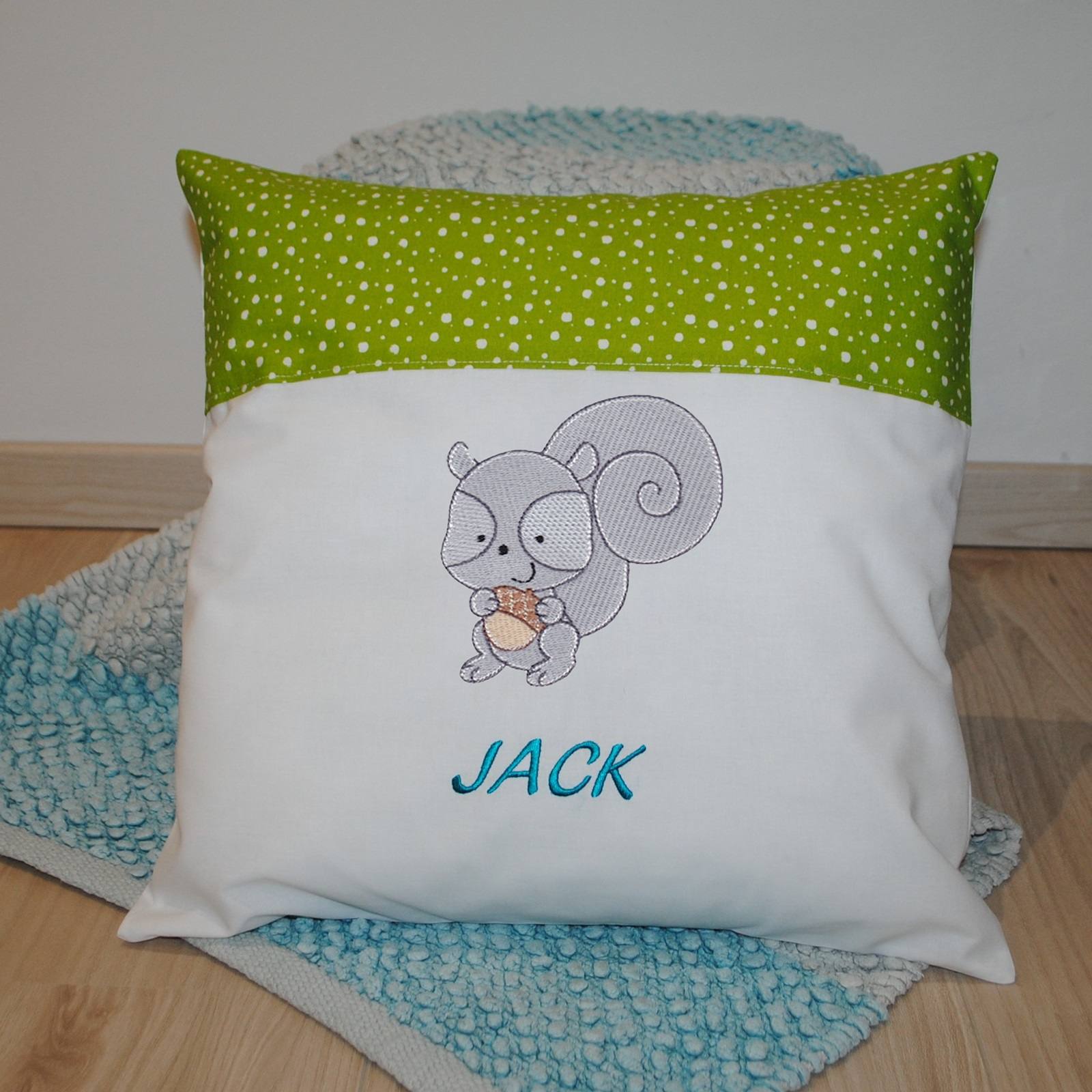 Unikatno okrasno blazinico si preprosto oblikujete sami s pomočjo prikazovalnika blazinic. Ob naročilu izbirate med široko paleto barv pisave, vzorcev za dekorativno borduro in osemnajstimi strojno vezenimi motivi gozdnih živali. Tako si lahko naročite kombinacijo, ki najbolj ustreza dani priložnosti.